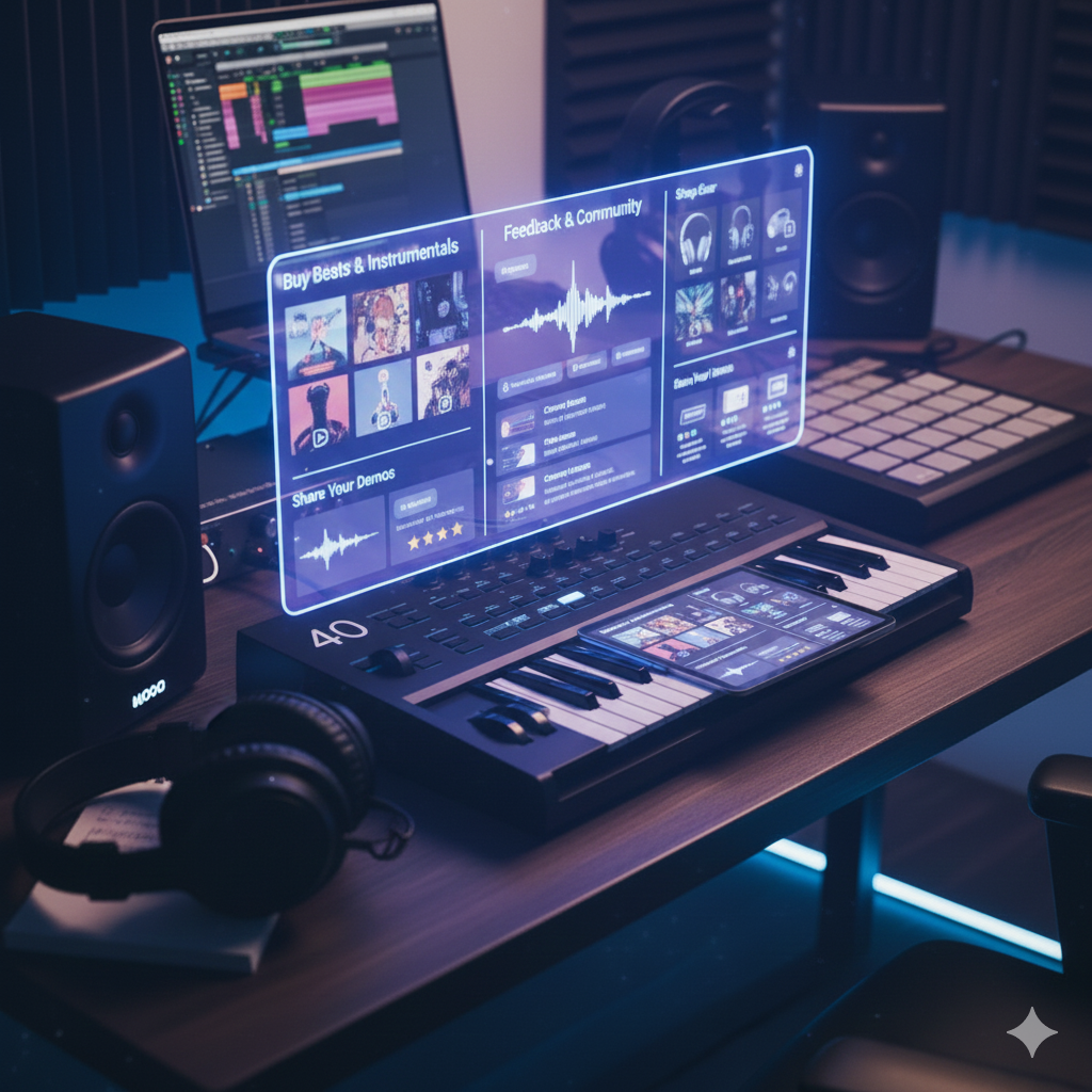 Ofrecemos un área donde los artistas pueden vender sus beats, comprar instrumentales y equipos, recibir comentarios de otros usuarios, interactuar con la comunidad, compartir sus demos y recibir valoraciones que les permitan mejorar su música dentro de nuestra plataforma.